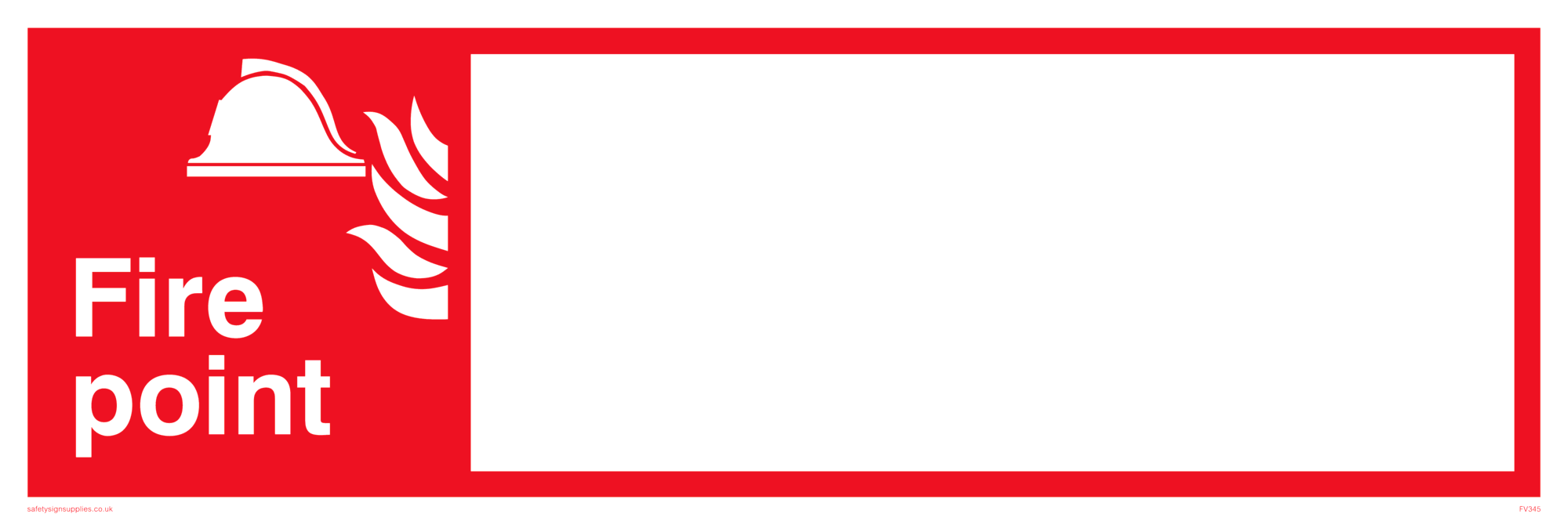 This sign contains a fire point symbol - firemans helmet in white on red background.