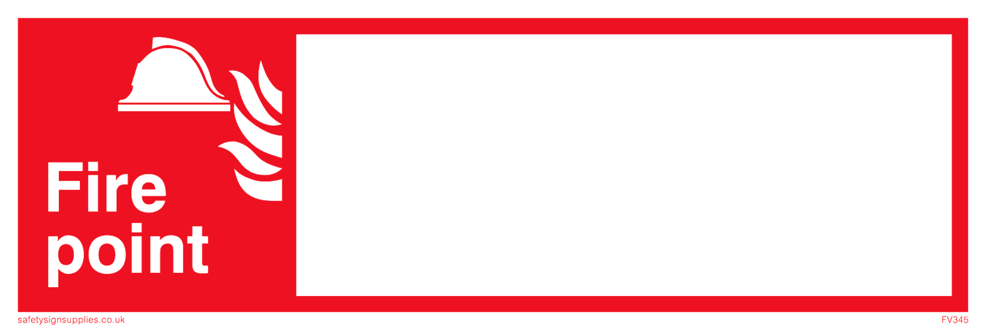 This sign contains a fire point symbol - firemans helmet in white on red background.