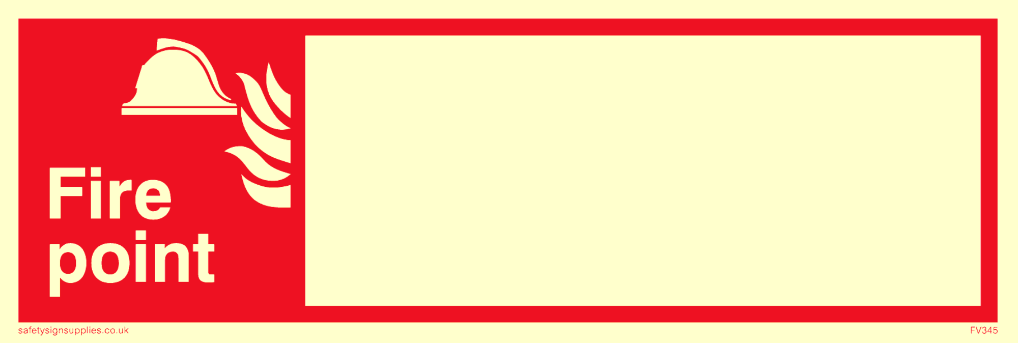 This sign contains a fire point symbol - firemans helmet in white on red background.