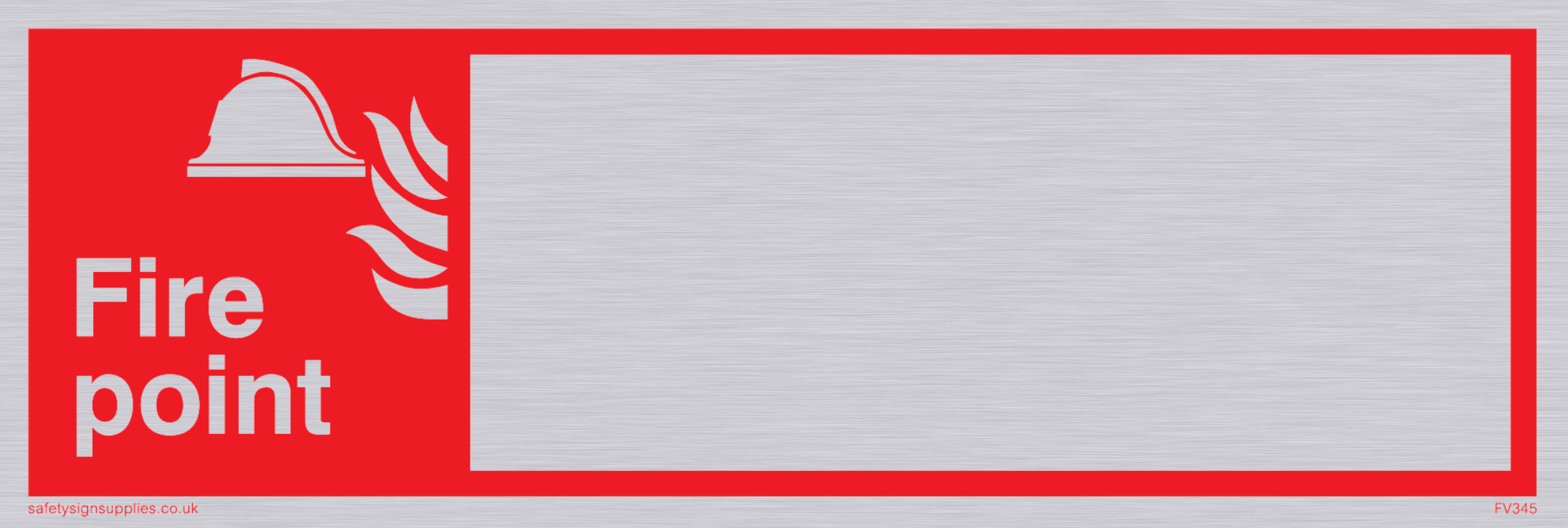 This sign contains a fire point symbol - firemans helmet in white on red background.