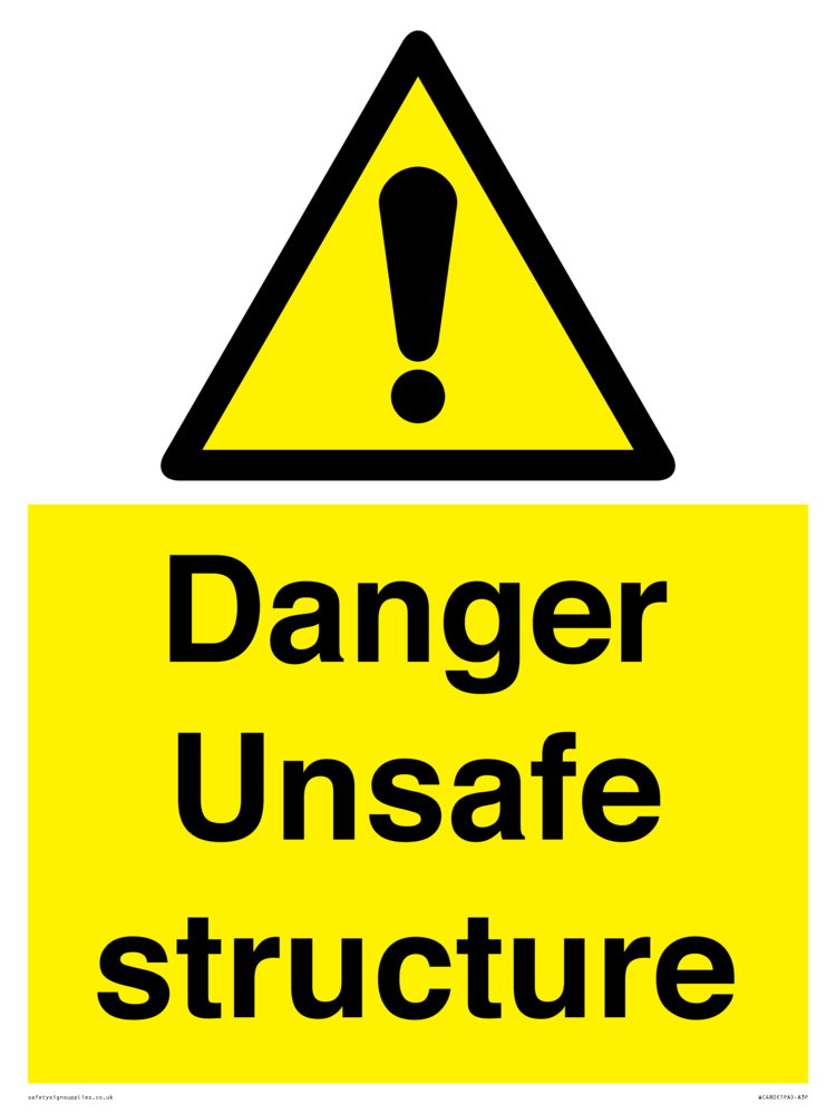Sign Text: Danger unsafe structure