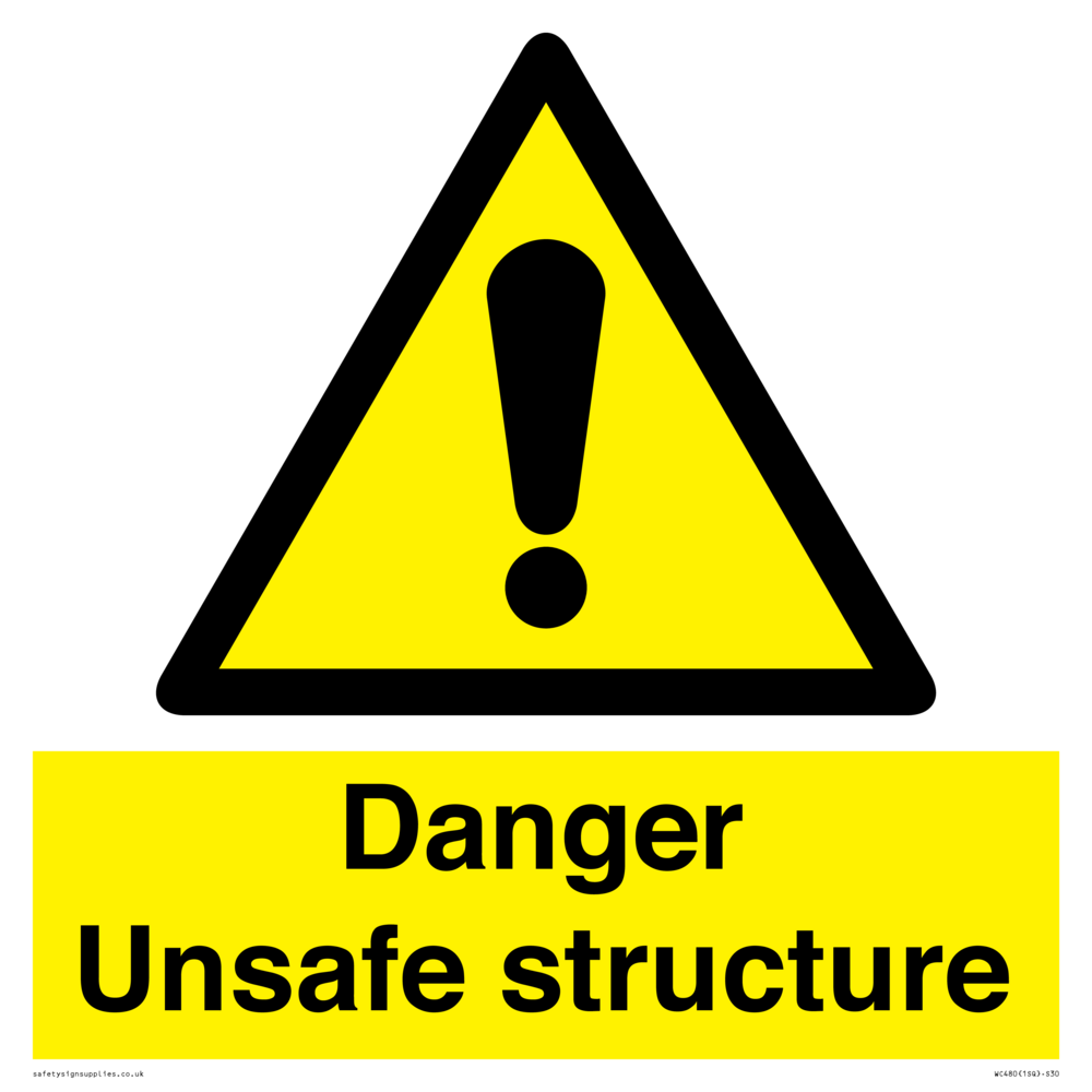 Sign Text: Danger unsafe structure