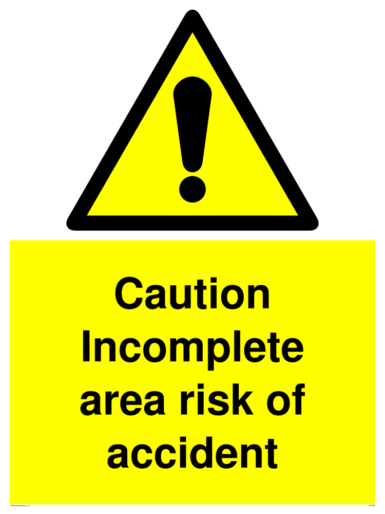 Construction Signs are used on building and construction sites to show safety policy requirements or hazards. Situational risk signs warn of a risk or danger from the situation, environment, area or place. This sign is extra large. This sign is approximately equivalent to A1 paper size.