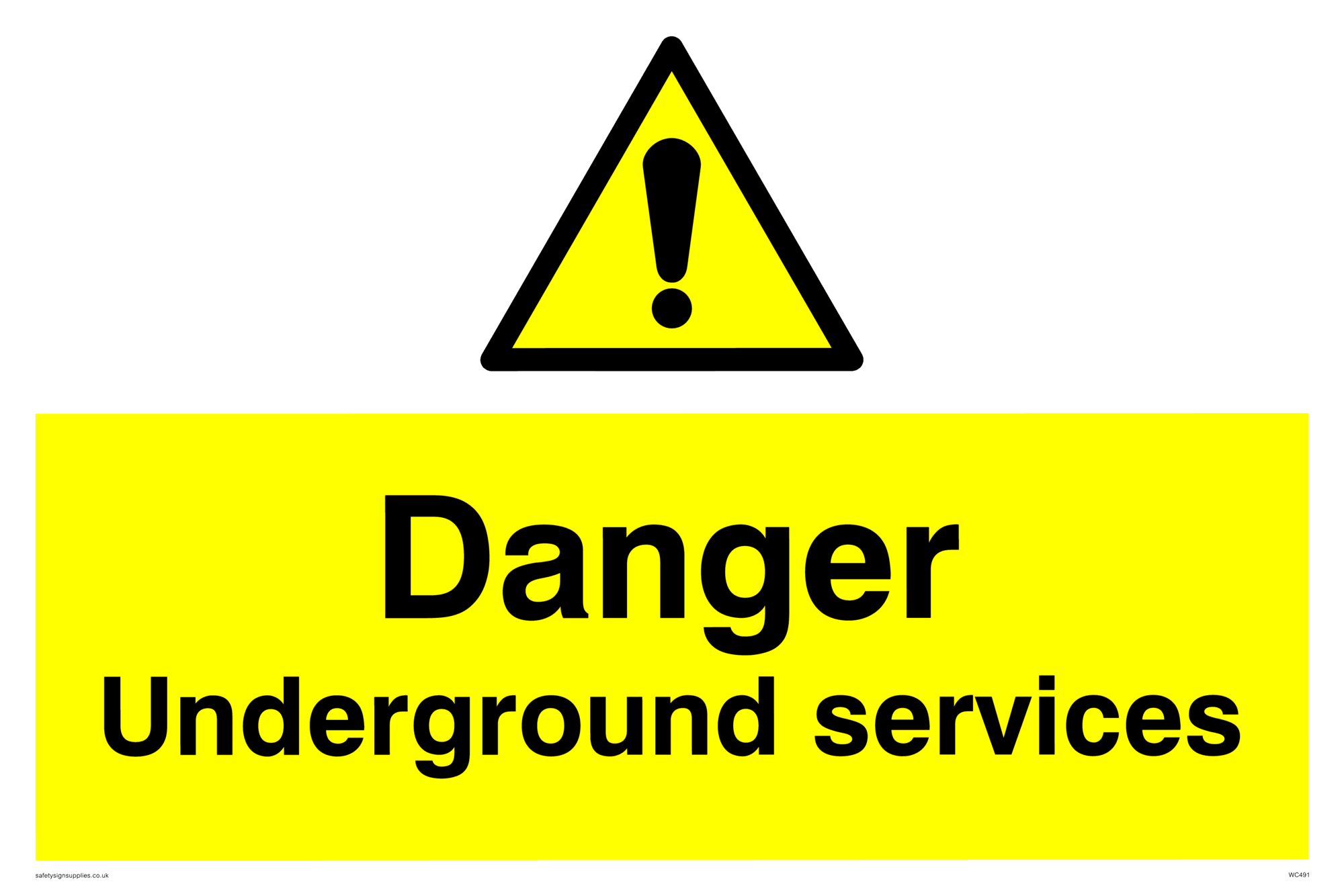 This sign contains a warning Exclamation Symbol - black exclamation mark on yellow triangle background.
