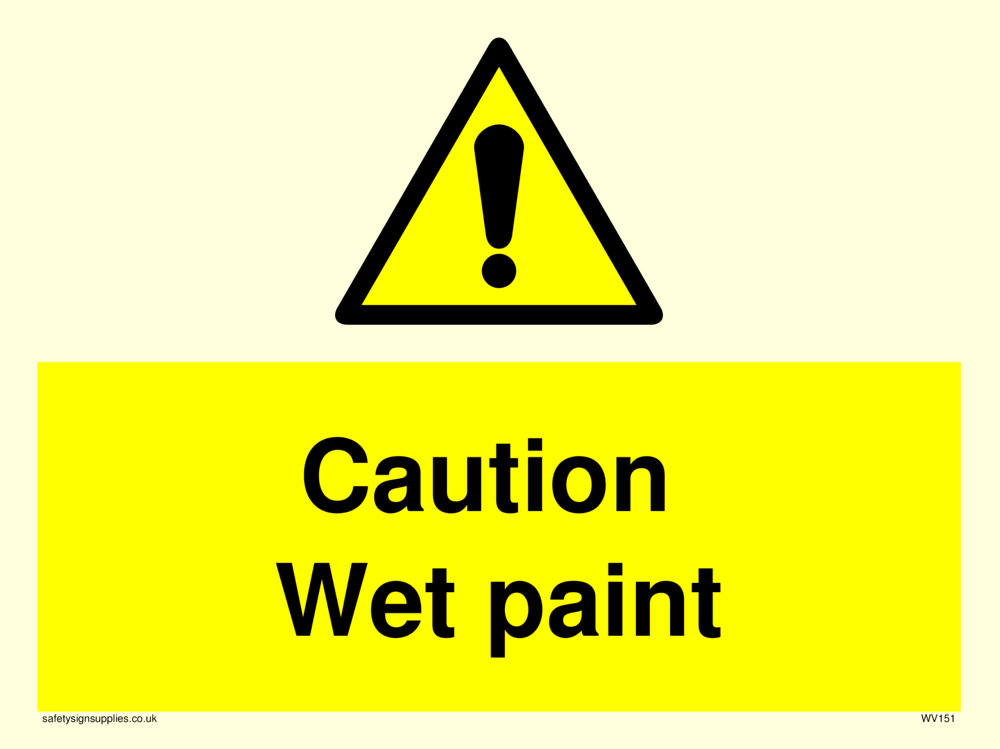 Sign Text: Caution wet paint