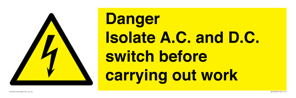 Isolate A.C. and D.C. switch before carrying out work