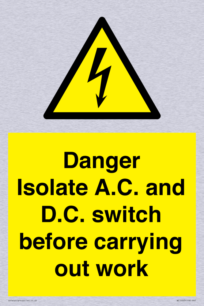 Isolate A.C. and D.C. switch before carrying out work