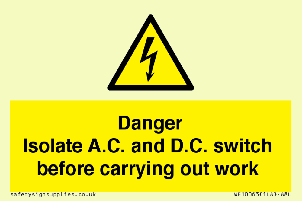 Isolate A.C. and D.C. switch before carrying out work