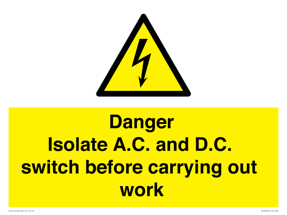 Isolate A.C. and D.C. switch before carrying out work