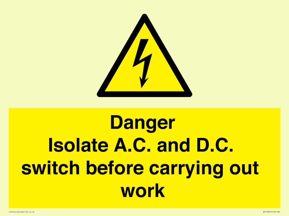 Isolate A.C. and D.C. switch before carrying out work