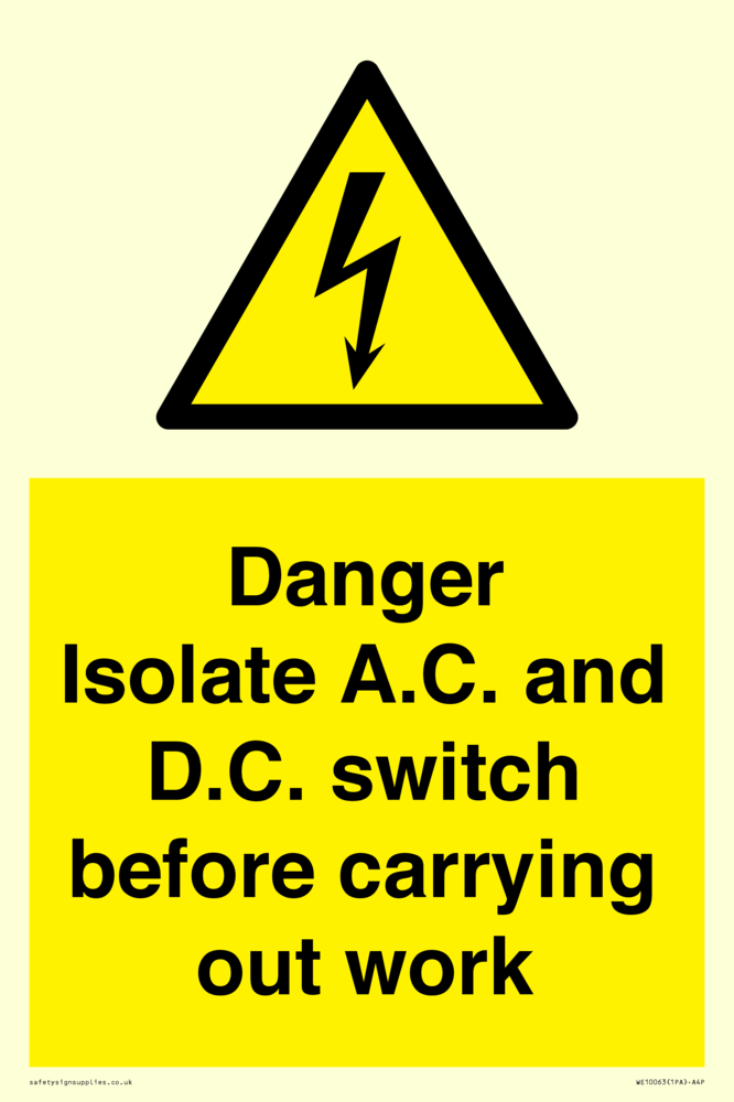 Isolate A.C. and D.C. switch before carrying out work