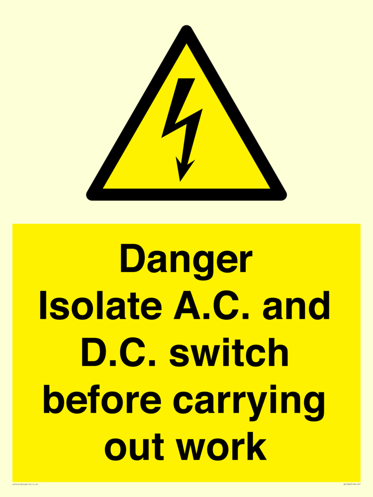 Isolate A.C. and D.C. switch before carrying out work