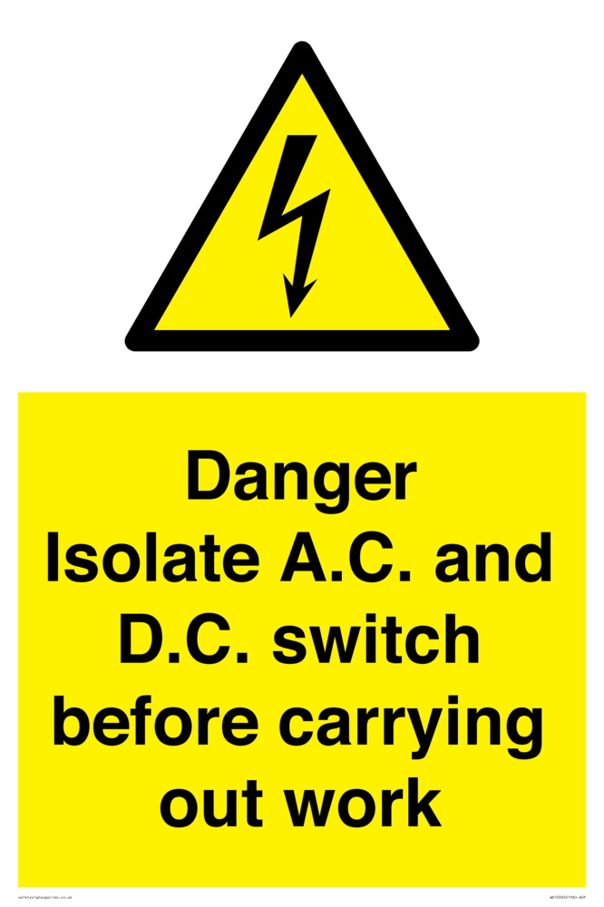 Isolate A.C. and D.C. switch before carrying out work