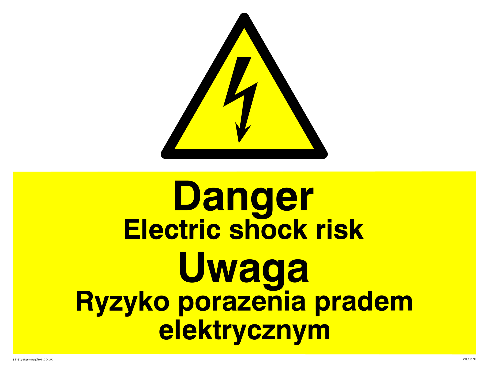 Sign Text: Danger electric shock risk Ryzyko porazenia pradem elektrycznym