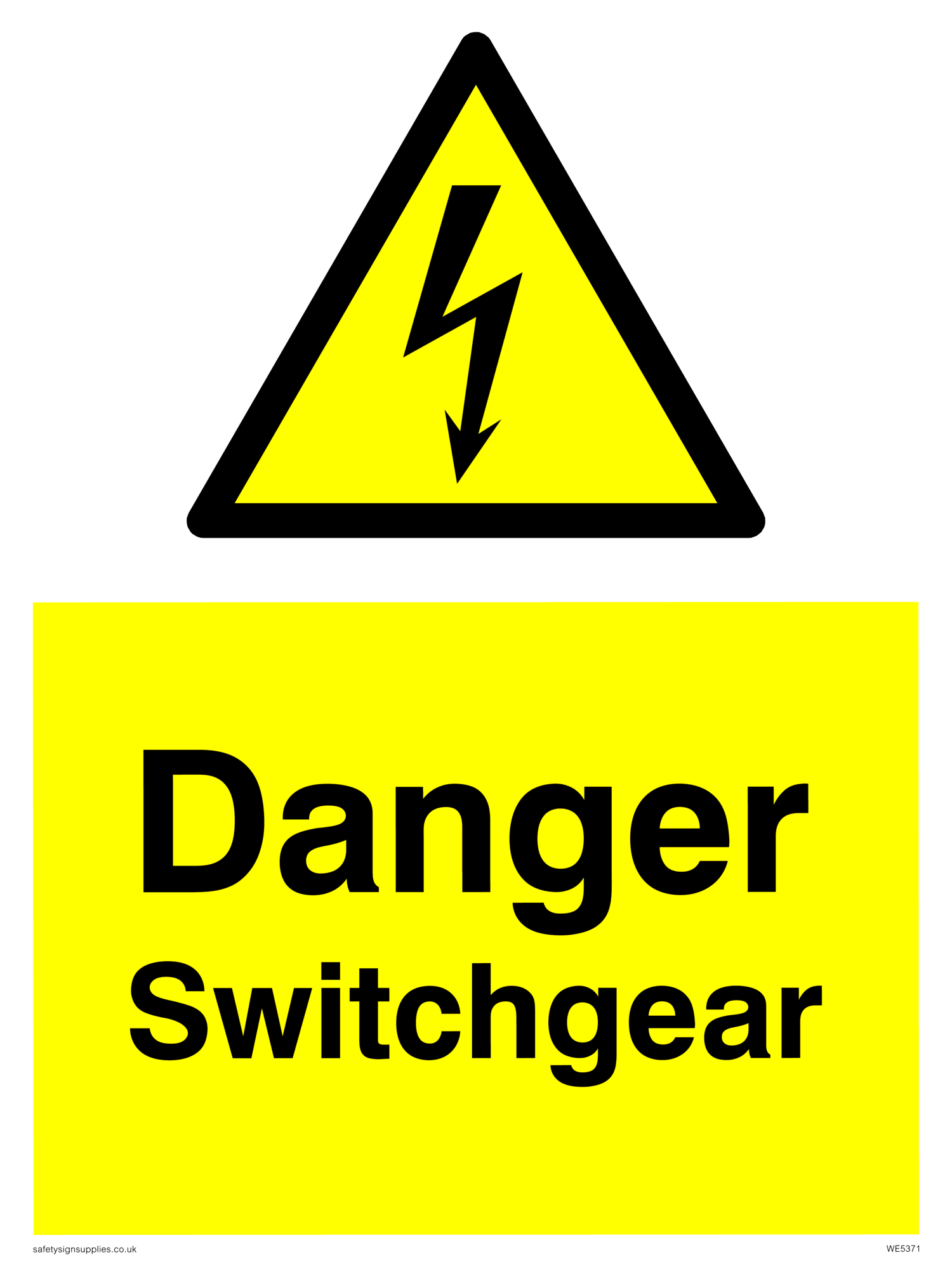 This sign contains an electrical warning symbol. Lightning flash in black on yellow warning triangle with black border.