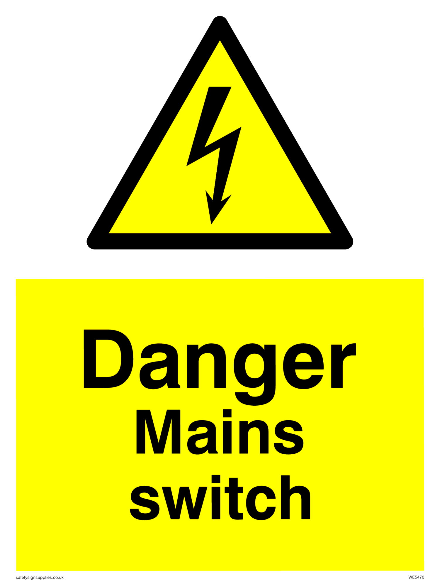 This sign contains an electrical warning symbol. Lightning flash in black on yellow warning triangle with black border.