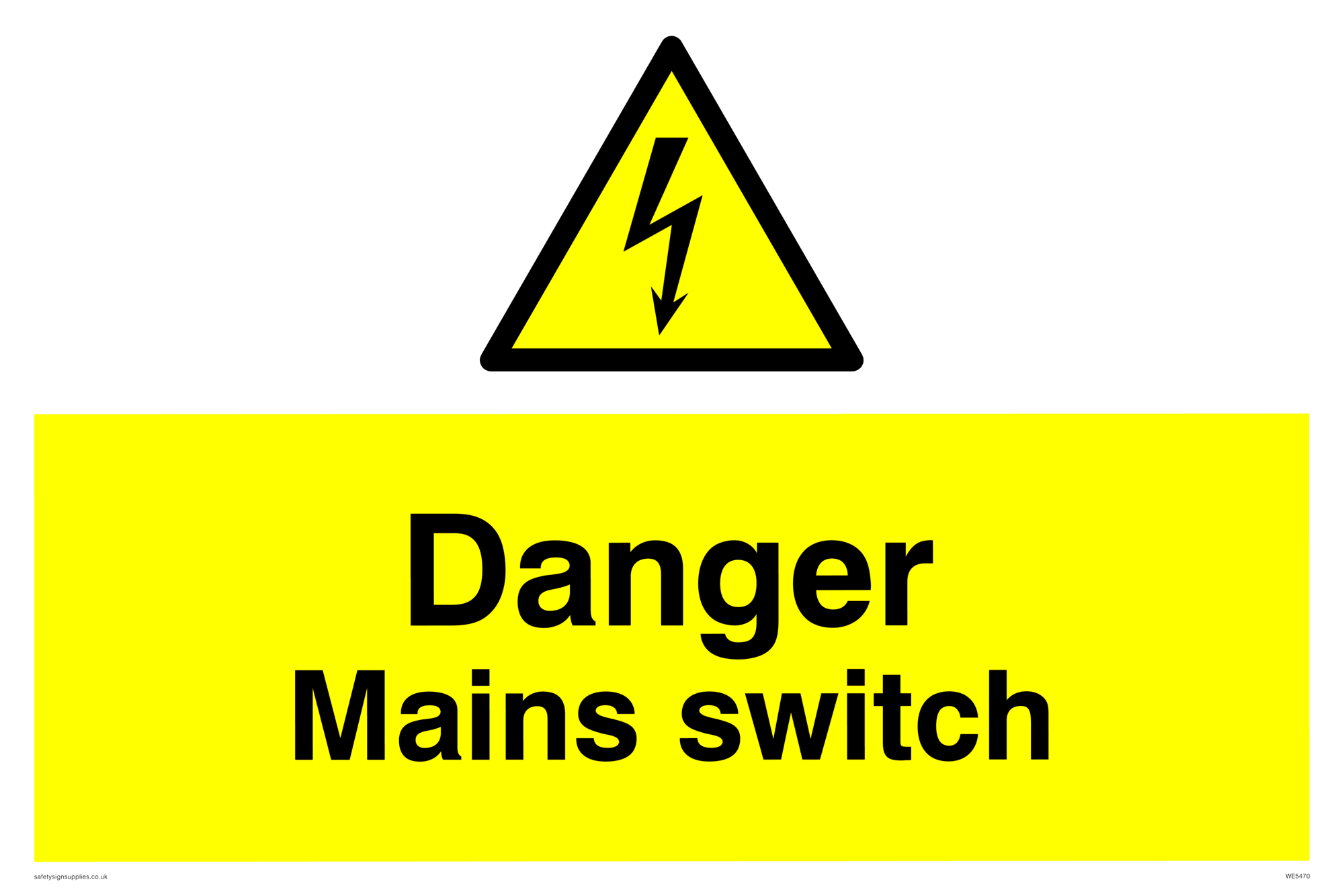 This sign contains an electrical warning symbol. Lightning flash in black on yellow warning triangle with black border.