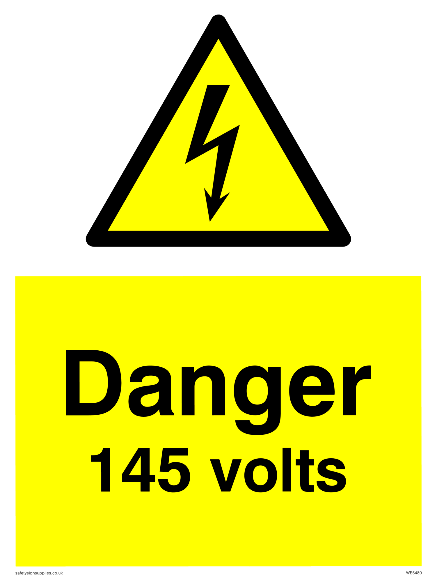 This sign contains an electrical warning symbol. Lightning flash in black on yellow warning triangle with black border.