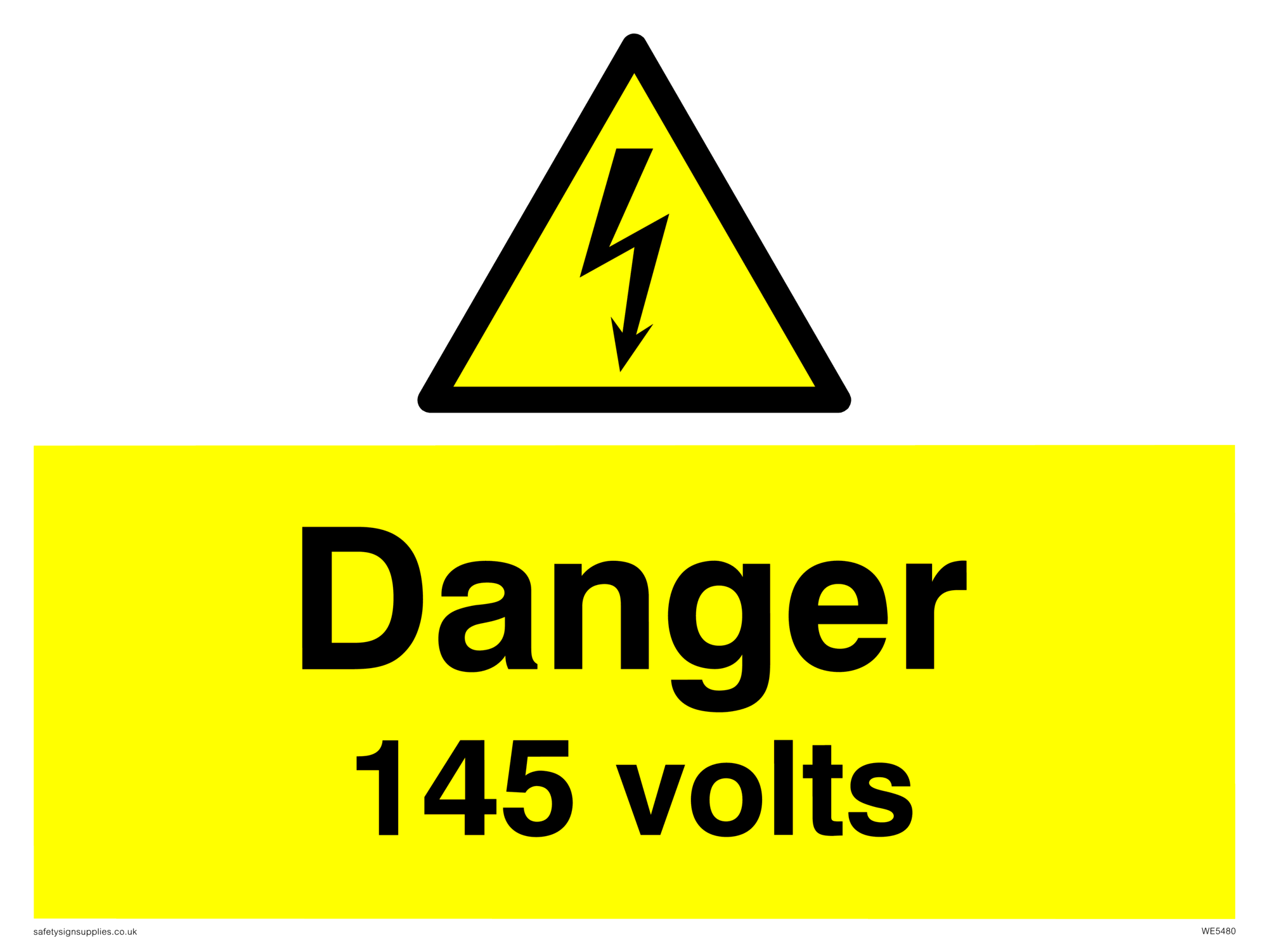 This sign contains an electrical warning symbol. Lightning flash in black on yellow warning triangle with black border.