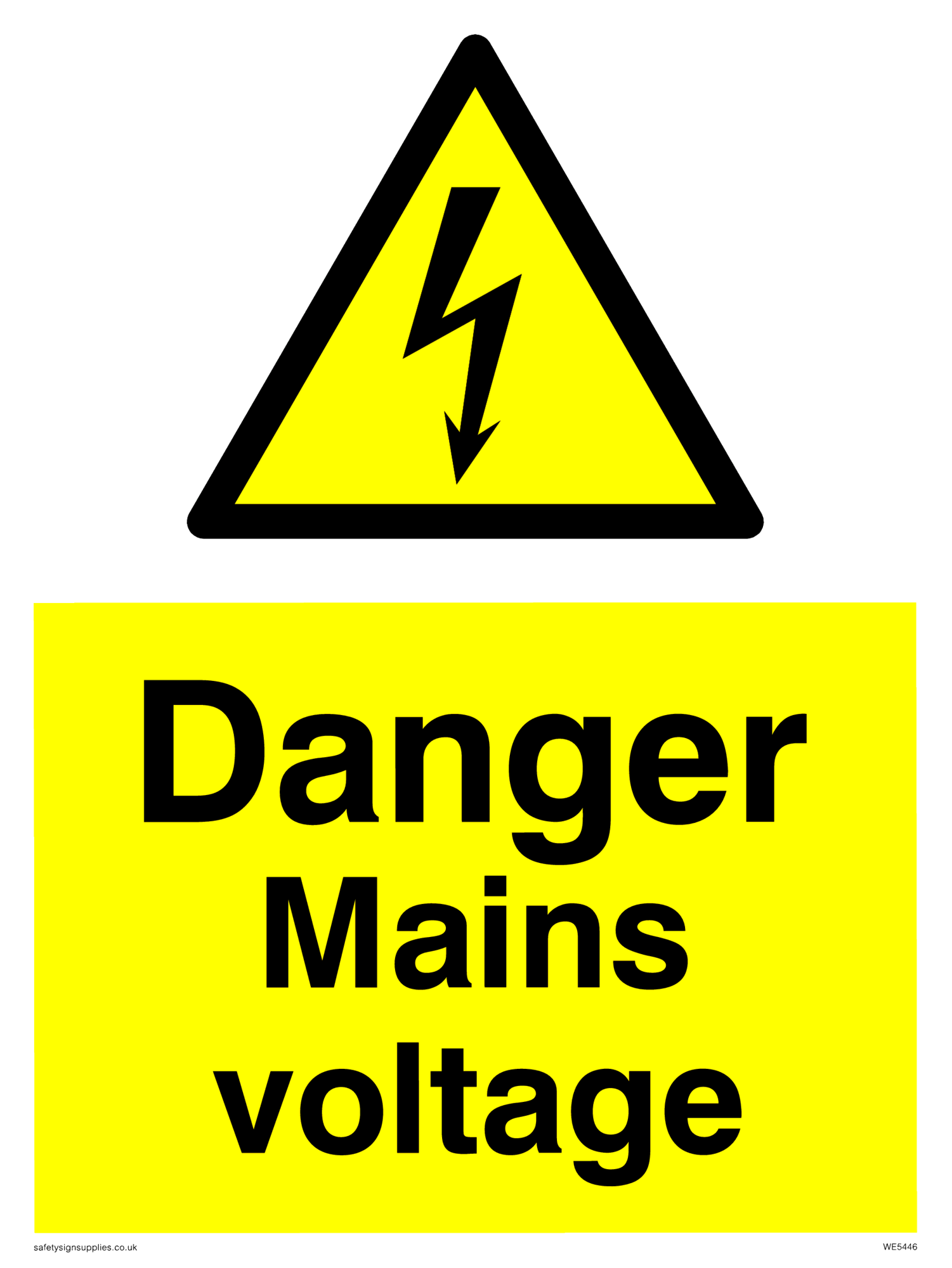 This sign contains an electrical warning symbol. Lightning flash in black on yellow warning triangle with black border.