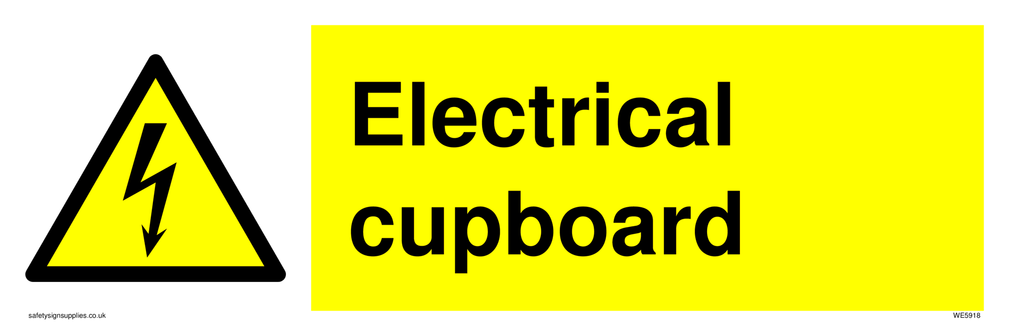 This sign contains an electrical warning symbol. Lightning flash in black on yellow warning triangle with black border.