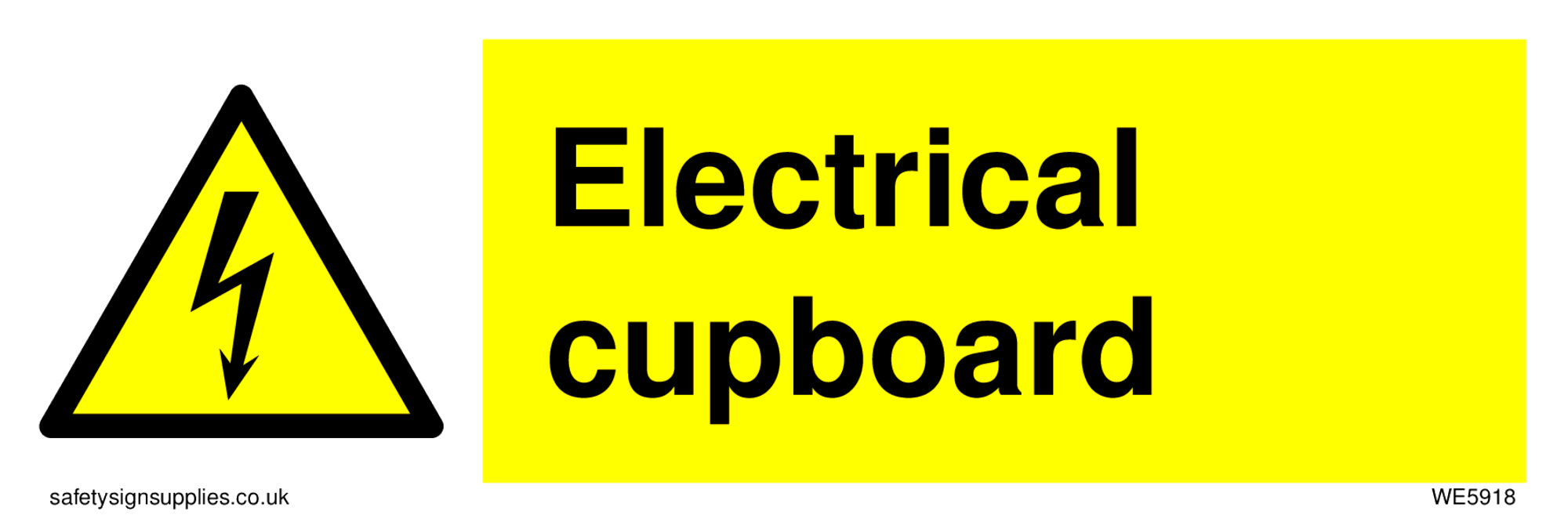This sign contains an electrical warning symbol. Lightning flash in black on yellow warning triangle with black border.
