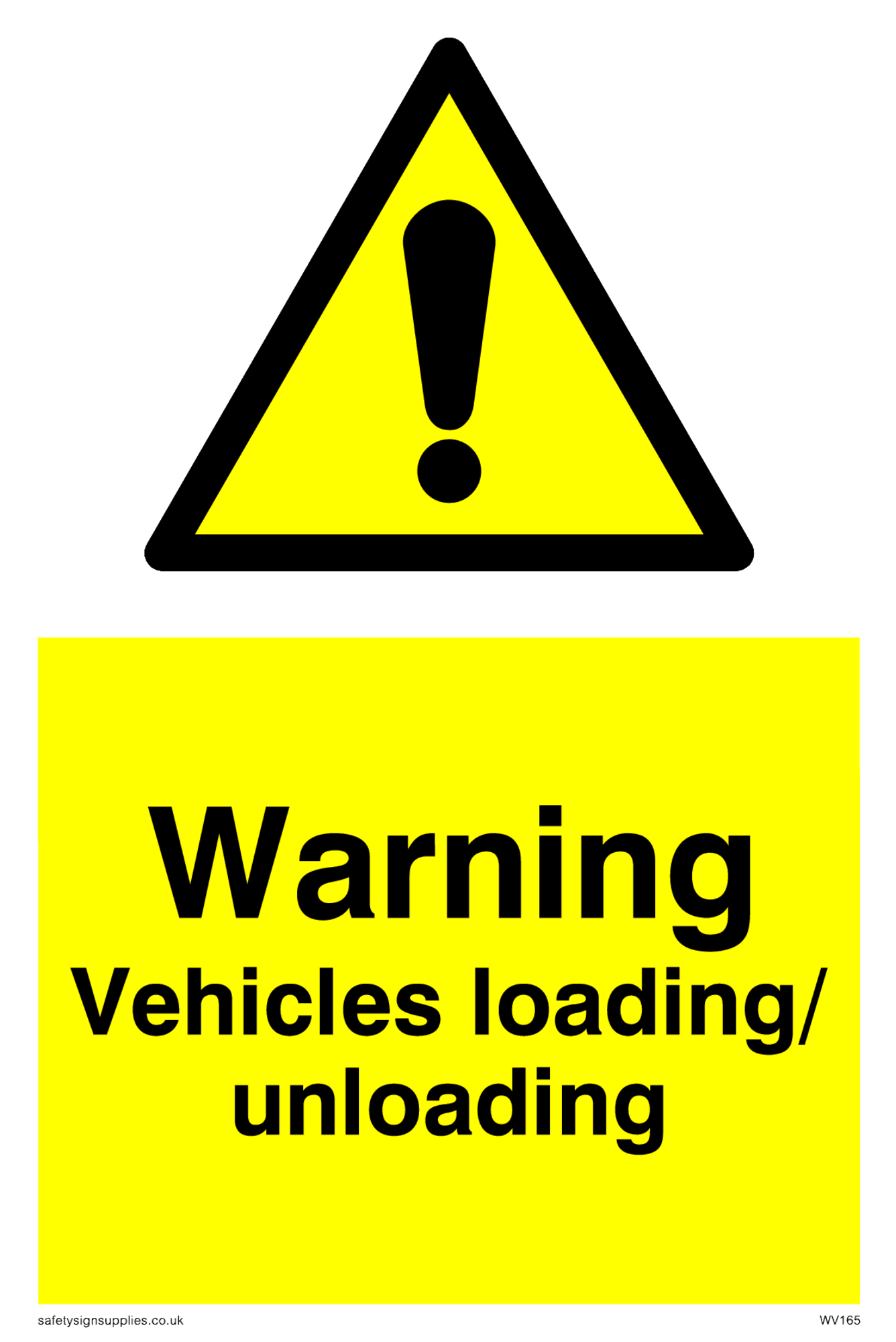 This sign contains a warning Exclamation Symbol - black exclamation mark on yellow triangle background.