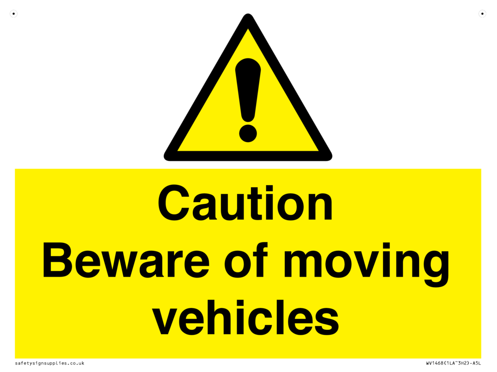 Caution Beware of moving vehicles with exclamation in warning triangle
