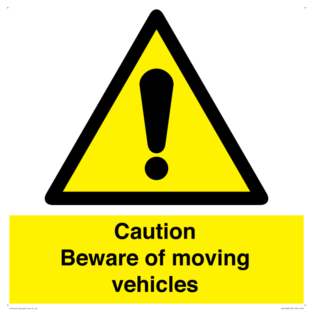 Caution Beware of moving vehicles with exclamation in warning triangle