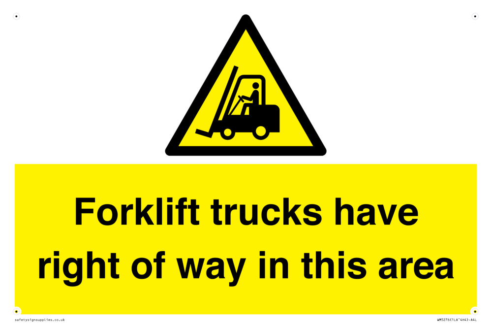 Sign Text: Forklift trucks have right of way in this area