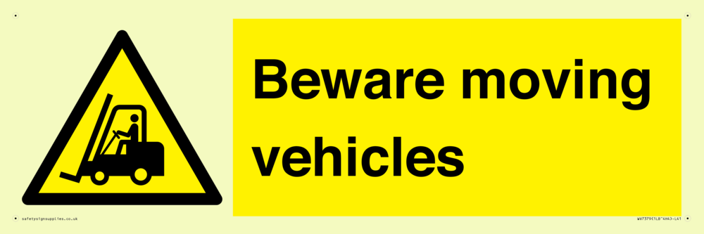 Sign Text: Beware moving vehicles