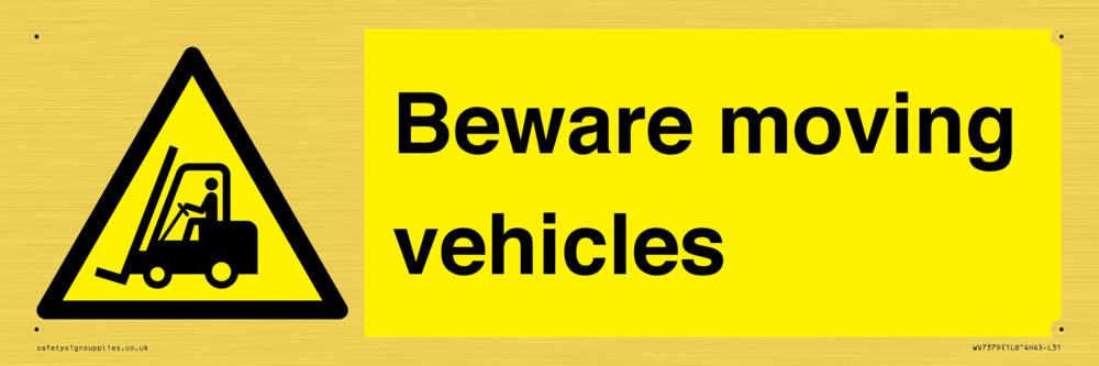 Sign Text: Beware moving vehicles
