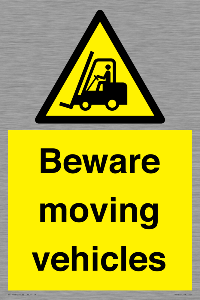 Sign Text: Beware moving vehicles