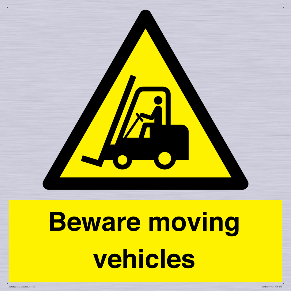 Sign Text: Beware moving vehicles