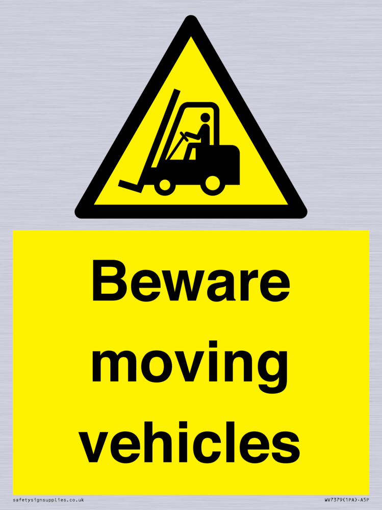 Sign Text: Beware moving vehicles