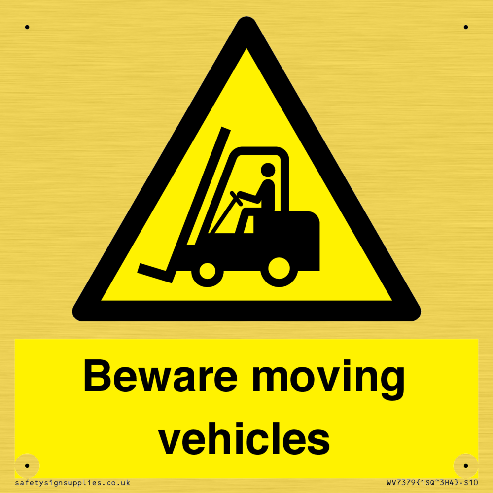 Sign Text: Beware moving vehicles