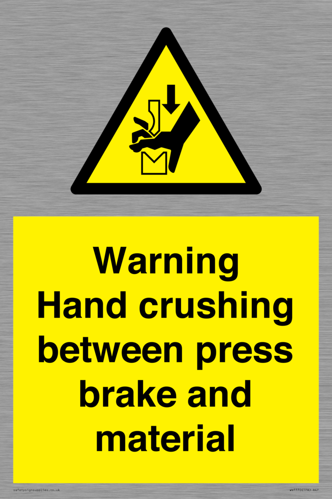 Sign Text: Warning Hand crushing between press brake and material