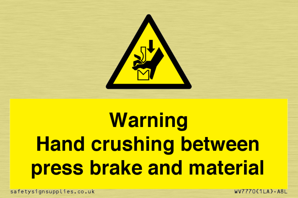 Sign Text: Warning Hand crushing between press brake and material