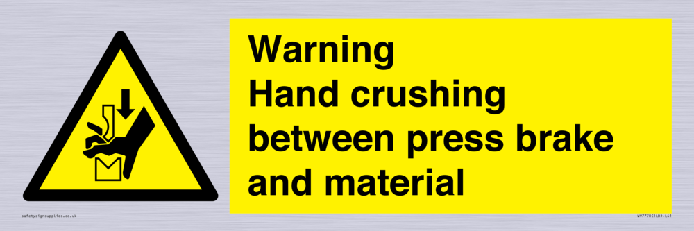 Sign Text: Warning Hand crushing between press brake and material