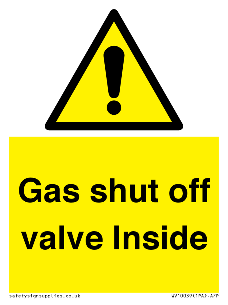 Sign Text: Gas shut off valve Inside