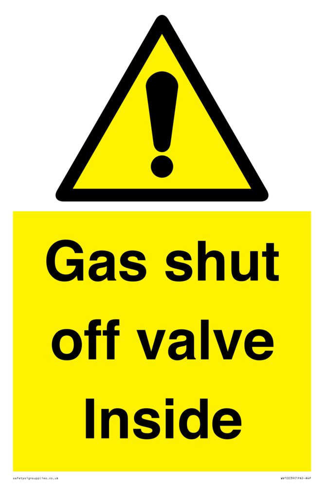 Sign Text: Gas shut off valve Inside