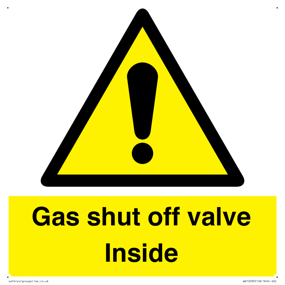 Sign Text: Gas shut off valve Inside