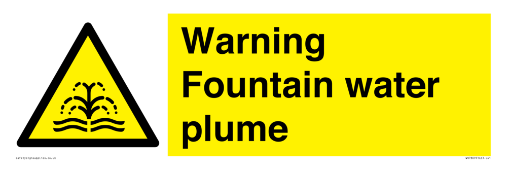 Sign Text: Warning Fountain water plume