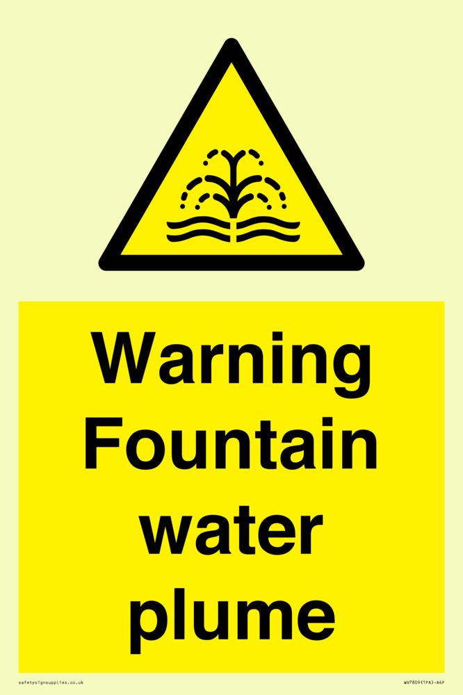 Sign Text: Warning Fountain water plume