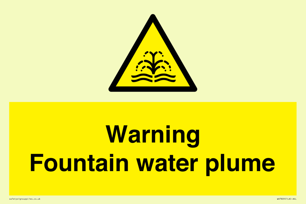 Sign Text: Warning Fountain water plume