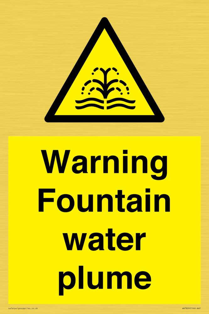 Sign Text: Warning Fountain water plume