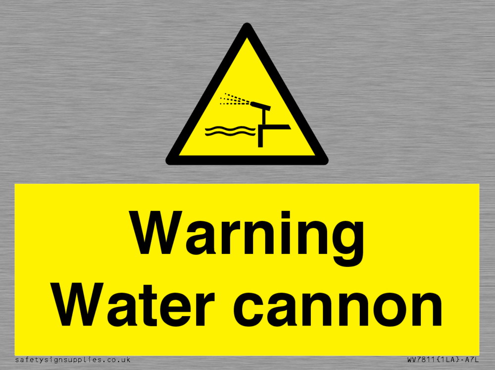 Sign Text: Warning Water cannon