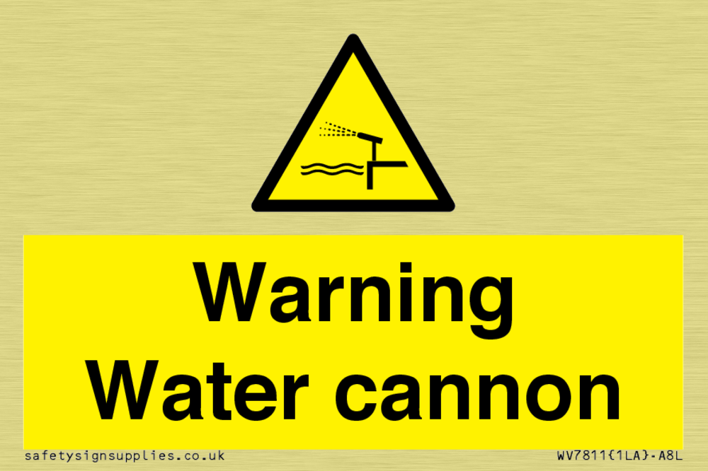 Sign Text: Warning Water cannon