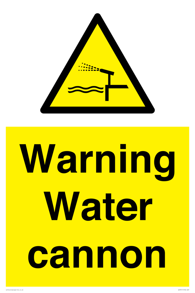 Sign Text: Warning Water cannon