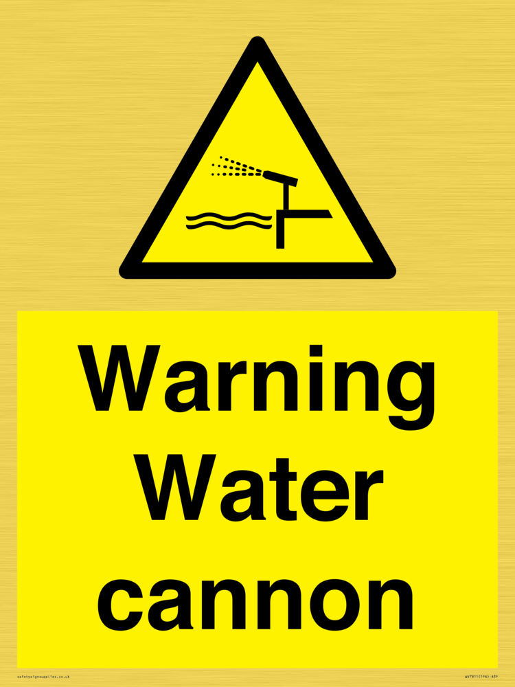 Sign Text: Warning Water cannon